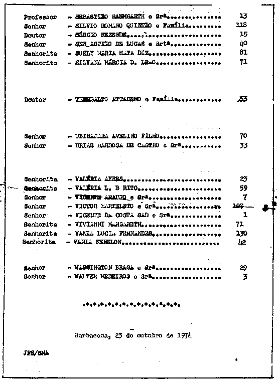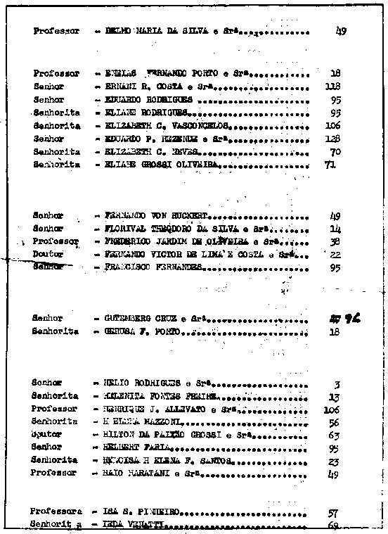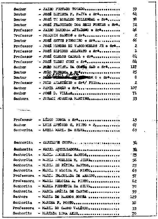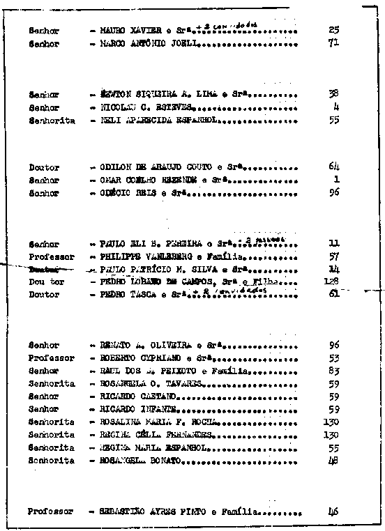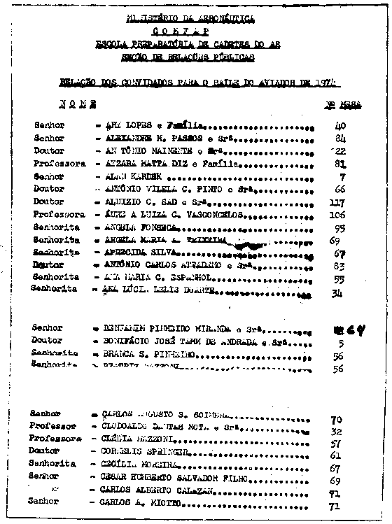 Relação dos Civis convidados para o Baile do Aviador realizado no refeitório da EPCAr. Apresentação das cinco páginas do original que se encontrava na SAEPCAr em 1974. Retorna inicial