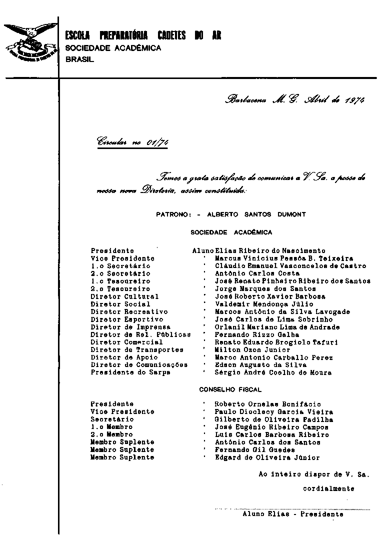 Circular 01/74 da Sociedade Acadêmica, datada de abril de 74,